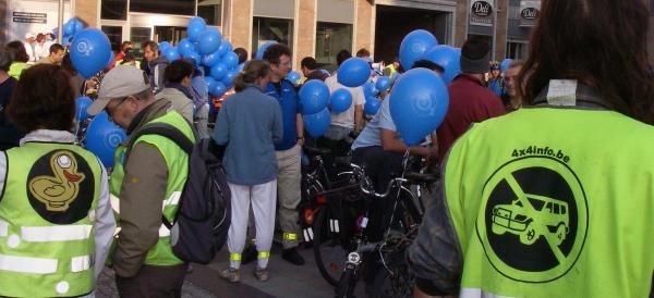 Elke laatste vrijdag van de maand fietst de Kritische Massa door Brussel. Deze vrijdag was er een speciale editie in het kader van de Week van de Vervoering. Zo’n 150 fietsers trapten moedig van de Naamse poort, via Flagey, langs het Europees parlement, over de Zavel naar het Warandepark. De gemeenschappelijke leuze luidde: “Fietsers zijn zuurstof voor de stad”.