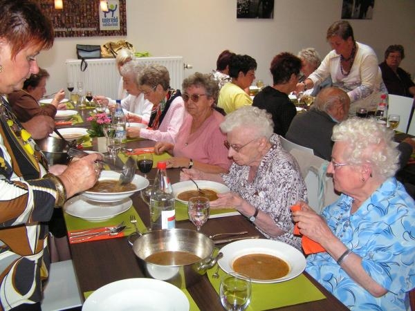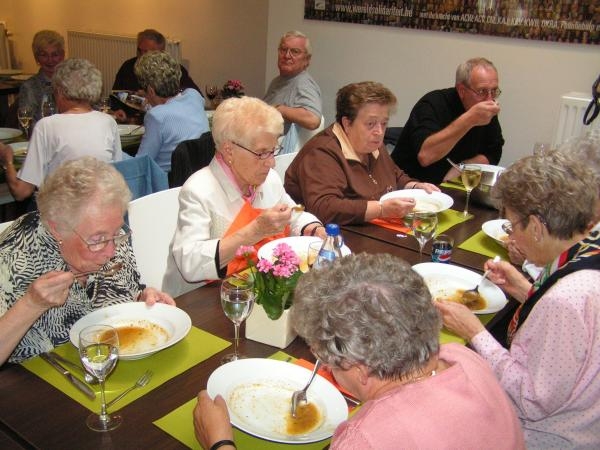 Eerst was een receptie - met hapjes en drankjes - voorzien in aanwezigheid van de districtschepen Chris Anseeuw. Daarna volgde een stoet - met de Stadstrommelaars - richting de foyer 'De Stroming' voor een maaltijd, in aanwezigheid daar van schepen Leen Verbist.