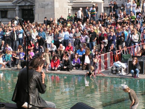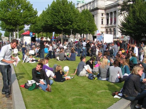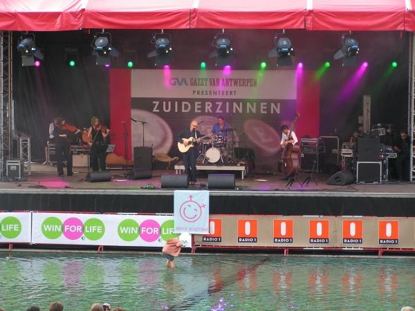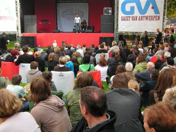 Ruim twintig duizend mensen zakten zondag naar het Antwerpse Zuid voor de negende editie.Deze editie stond in het teken van het dialect.Ook was er plaats en ruimte voor muziek.Antje De Boeck-in de Camu- trok veel belangstelling naar haar toe na haar uitspraak verleden week over haar statuut.Met haar man Ronny op de bandoneon en Hendrik Pellens op saxofoon,was het tijd voor een dertigtal minuten met een performance.Acteren was nooit ver,en emoties ook niet wanneer ze een woordje van haar dochter las en toonde aan het ruime aanwezig publiek.