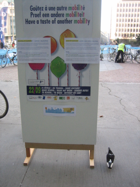 Voor mij is het elke dag bikeday in Brussel. Van Sint-Joost-Ten-Node naar Schaarbeek, slechts tien minuutjes met de fiets. Vaak steek ik lijn 64 van de MIVB langs rechts voorbij. Aan het rond punt van het Weldoenersplein staat een zwaantje te zwaaien dat ik rechtsom moet (linksom is korter, maar enkel voor voetgangers). Fijn toch dat deze meneer in zijn uniform mij manieren wil leren. Allemaal op weg naar een fijne mobiliteit!