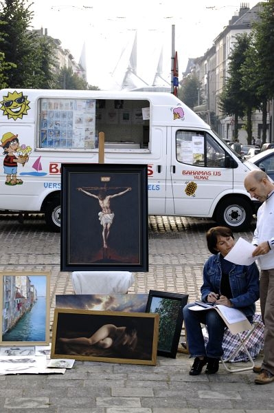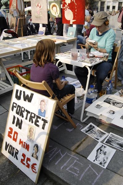 De laatste editie van de vijfde jaargang van deze kunstenmarkt zit erop. Een grote schare kunstenaars en belangstellenden zakten af naar dit kleurrijke plein, dat muzikaal opgeluisterd werd door het onvolprezen Trio Perdu en de Ambrassband.