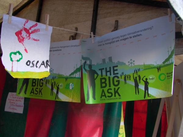 Le mot d'ordre chez Friends of the Earth est clair: Il est temps d'agir! Depuis l'année dernière, la campagne européenne “The Big Ask” oeuvre déjà dans l'optique de la création d'une loi qui promulguerait une réduction d'émission progressive de 3% par an. Interrogées sur leurs attentes quant à cette action, Véronique et Famke nous ont expliqué qu'il s'agissait pour elles avant tout d'interroger les passants sur la gestion politique de cette autre crise plus latente et urgente. La réponse est sans appel: une grande majorité de la population ne pense pas que les politiques à échelle nationale, européenne ou internationale soient assez actives. Et c'est ce non qu'ensemble, elles veulent porter aux oreilles des décideurs du monde.