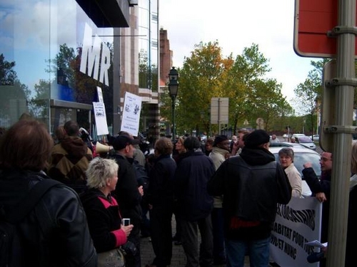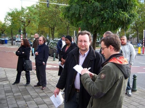 Twee jaar nadat het Collectief 103 uit de Bd de Waterloo 103 werden uitgewezen, is het pand nog steeds een wanhopig symbool van leeg gelaten vermogen. Op maandag 27 oktober verzamelden de mensen van het Collectief voor hun oude kraakwoning. Onze Belgische regering, met de liberalen voorop, aarzelt niet om de grote financiële groepen te hulp te komen. Heeft het menselijke kapitaal dan geen recht op overleven? Het Collectief 103 stak de Bd de Waterloo over om haar eisen te presenteren aan de zetel van de MR, de 'Mouvement Réformateur', in de hoop om een gesprek te hebben met minister Reynders. Het Collectief 103 wil de stem laten horen van de meest noodlijdenden in onze samenleving en een financiële steun eisen voor betaalbare en menswaardige woningen. De Minister van financiën, met wie ze nochtans een afspraak hadden voor een gesprek, gaf niet thuis. Hij had waarschijnlijk dringendere zaken te doen. Een woordvoerder van de MR verzekerde de actievoerders dat hij hun eisen aan mijnheer Reynders zou overmaken. Wordt vervolgd ...