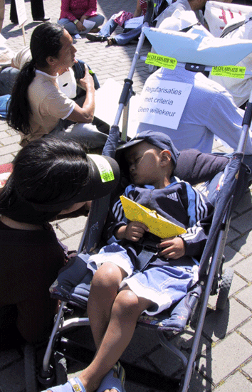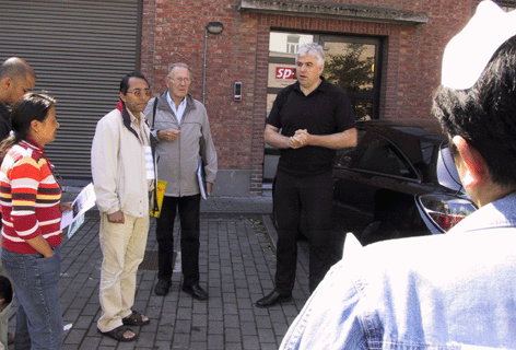 Ook in Leuven gingen de mensen zonder papieren vrijdag op bezoek bij leden van de SP.a. Doel was duidelijkheid te krijgen over de visie van SP.a rond de problematiek van mensen zonder wettig verblijf. Omdat de SP.a – als partij van de solidariteit en haar historische aandacht voor de zwakkeren – een natuurlijke bondgenoot lijkt. En omdat ook de socialistische vakbond ABVV openlijk kant kiest voor mensen zonder papieren, maar de partij in het hele debat opvallend stil blijft.
