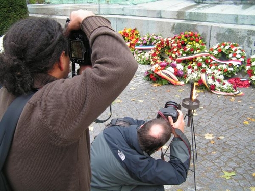 Aan het monument werd de fakkel in ontvangst genomen door de burgemeester. Onder muziek van de Koninklijke muziekkapel van de lokale Politie Antwerpen legde burgerlijke en militaire overheden en ook afvaardiging van oud-strijders, weerstanders en politieke gevangenen, kransen neer aan de voet van het gedenkteken. De muziekkapel speelde de 'Last Post' en het Belgisch volkslied. (Bekijk ook fotoreportage van Raymond Clement.)