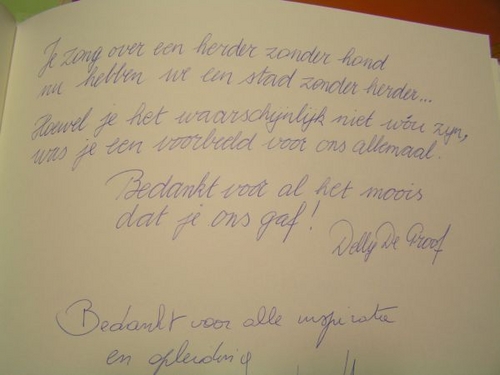 'Zondag 23 november krijgen publiek, vrienden en collega's de gelegenheid om in De Roma (Turnhoutsebaan 286 in Borgerhout) afscheid te nemen van Wannes Van de Velde. Tevens is er mogelijkheid om na de herdenkingsplechtigheid een laatste groet te brengen. De deuren van De Roma gaan open om 14 uur en blijven voor deze gelegenheid de hele avond open. De plechtigheid zelf begint om 15 uur'. In naam van de familie, Bob De Moor, Kris Eelen, Paul Schijvens en Karel Vingerhouts.