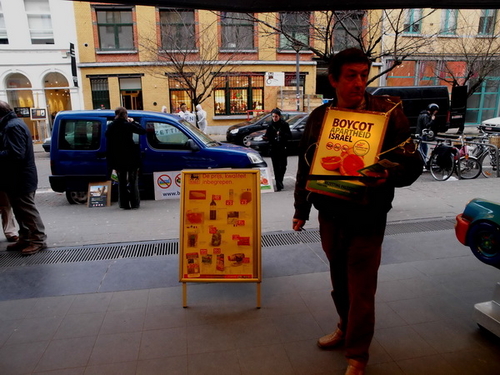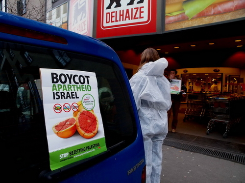 Vandaag 29 november dag van de solidariteit met het Palestijnse volk vond er ook een boycotactie plaats aan de Delhaize in de Museumstraat. Enkele sfeerbeelden.