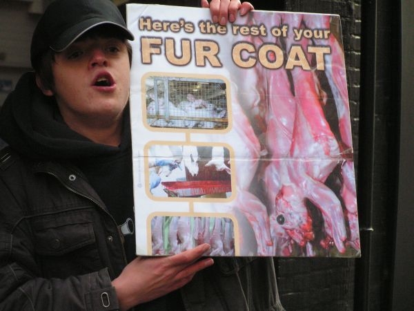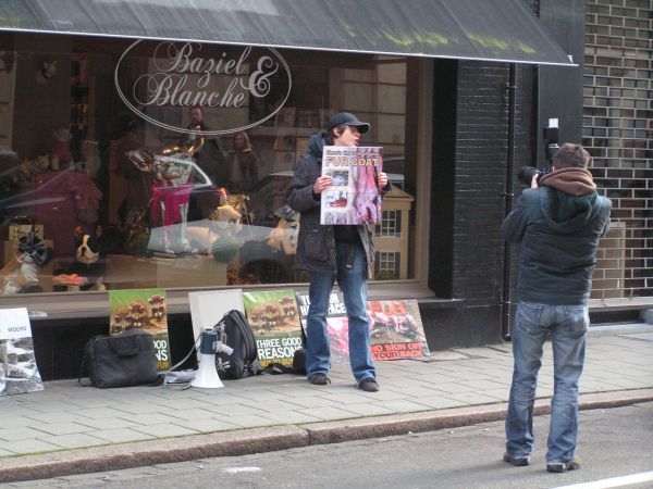 Belachelijk dat de winkel (zie foto boven) van mening is dat deze activisten leer dragen. Zeker nooit gehoord van Vegetan Upper (een diervrij product wat op leer lijkt!).