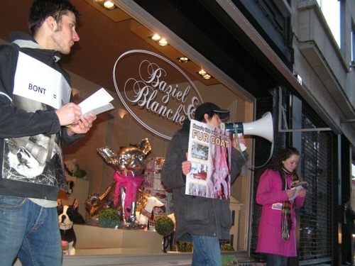 Zaterdag protesteerde de dierenrechtenorganisatie 'Respect voor Dieren (NL)aan een drietal winkels in Antwerpen tegen het gebruikt van bont in kledij - ook in Europa. Onder andere de modeshop voor... honden van Phaedra Hoste, Baziel en Blanche, werd geviseerd. Phaedra is hét gezicht van Pelsland.