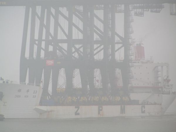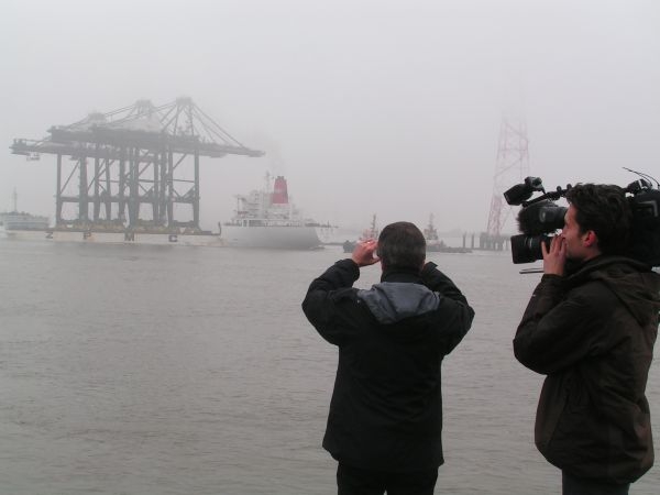 Het schip heeft een reis van verscheidene weken achter de rug met vertrek uit China en een tussenstop in het Duitse Bremerhaven waar 2 containerkranen werden gelost.