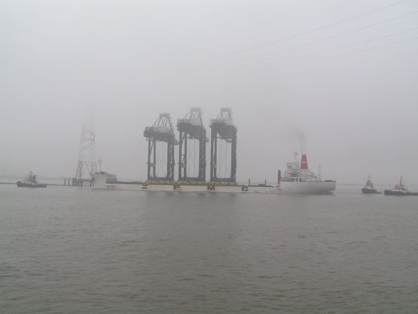 Uniek aan dit type van transport is dat de kranen volledig geassembleerd aan boord gaan en zo de reis over de oceanen aanvatten om op plaats van bestemming via een winchen systeem van het schip gereden te worden.