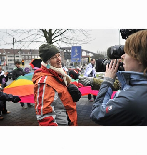 Op de Wollemarkt, bij het Aartsbisschoppelijk paleis, werd een minuut stilte gehouden rond de regenboogvlag voor de slachtoffers van geweld tegen holebi's overal ter wereld. Daarna belden de actievoerders aan. Yvan Brys van de Holebifederatie: "Hans Geybels, woordvoerder van de kardinaal, had reeds aangekondigd dat deze niet aanwezig zou zijn. We hadden dan maar een gesprek met de heer Geybels aangevraagd, maar die bleek zelf ook afwezig. De deur werd geopend door de secretaris van de Aartsbisschop. Deze beweerde van niets te weten. Hans Geybels was volgens hem 'in vergadering' Het feit dat de secretaris volledig uit de lucht viel leek te bevestigen dat het Aartsbisdom liever niet met ons in gesprek gaat over dit onderwerp. Temeer daar op onze vraag of hij ons kort wou ontvangen de reactie stroef en afwijzend was. We konden hem enkel het pamfletje overhandigen dat ook aan de bevolking van Mechelen was uitgedeeld. Al bij al een koel onthaal terwijl we gehoopt hadden enige nuance te horen bij de starre houding van het Vaticaan. Blijkbaar wordt niet voor iedereen die aanklopt open gedaan aan de Wollemarkt."