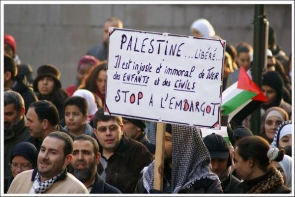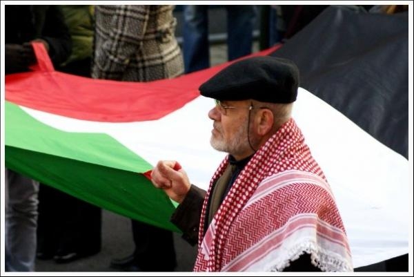 In Brussel betoogden vanmiddag ruim 6500 mensen tegen de luchtaanvallen op de Gazastrook door de Israëlische overheid. (deel 1)