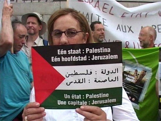 Het Actieplatform Palestina hield gisteren een protestactie voor het ministerie van Buitenlandse Zaken. Hiermee wilden ze de Belgische regering en de Europese Unie oproepen om de beschikbare vreedzame middelen in te zetten om Israël te dwingen zijn agressie tegen het Palestijnse volk stop te zetten.