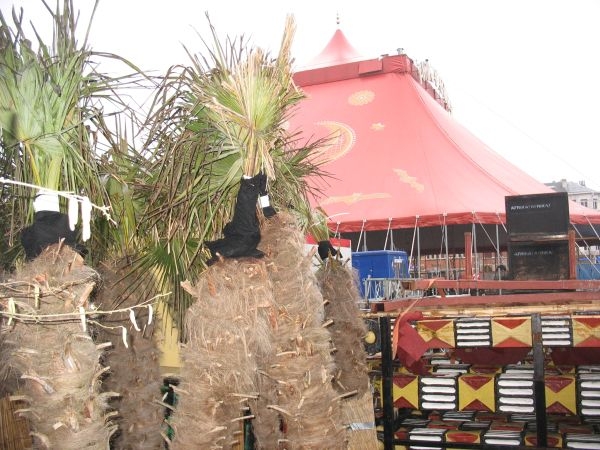 De tenten,opgesteld naar het voorbeeld van de oord-Afrikaanse berbertenten,willen met hun vormgeving de bezoekers helemaal in de sfeer van het fantastische continent brengen.