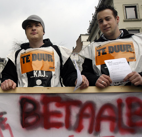 - Manifestation du KAJ à Bruxelles contre les prix d'achat et de location des logements sociaux ainsi que contre les logements inoccupés.