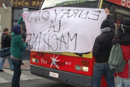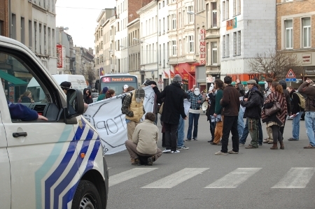 De studenten van de ULB die zich verenigen in het Comité d'Actions et de Soutien (CAS) kwamen op straat voor de sans-papiers. Met trommels, banners en flyers roepen ze de bevolking op om solidair te zijn met de zaak van de mensen zonder papieren. De politie was aanwezig om alles in goede banen te leiden, maar dat draaide uit op een kat-en-muisspel tussen de ordediensten en de manifestanten. Voor het kantoor van minister van Migratie, Turtelboom werd de Wetstraat gedurende een twintigtal minuten geblokkeerd. Daarna liepen de studenten tussen de auto's door naar de metrohalte Schuman vanwaar ze naar de universiteit terugkeerden.