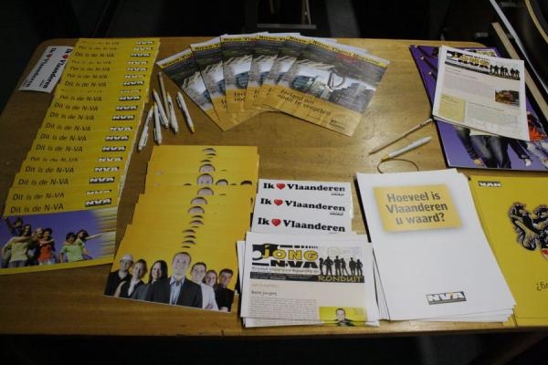 Op een tafel ook veel propaganda voor N.V.A en Vlaanderen.