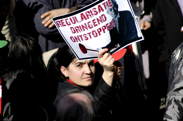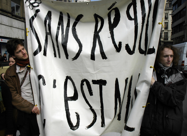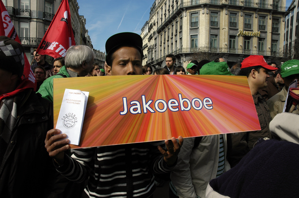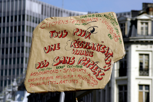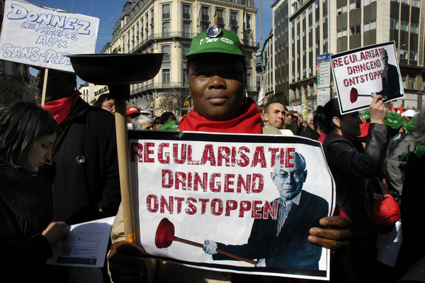 Bruxelles - Action devant la Bourse dans le cadre de la journée nationale pour la régularisation des sans-papiers