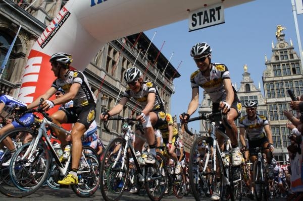 Zoals gewoonte vertrokken de renners deze woensdagmiddag uit de Antwerpse Grote Markt.