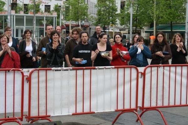 Eén der...75 stunten van de Chiro's voor hun 75 jaar bestaan startte deze donderdag middag(13uur) op de Groenplaats .Stunt-mee-in Antwerpen is de naam van deze acties