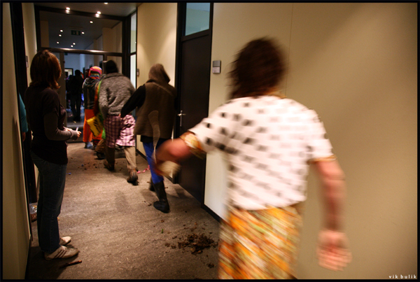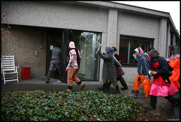 GENT -- Op vrijdag 17 april 2009 omstreeks 14 uur brachten zo'n 30 tal sympathisanten van het Lappersfortbos een onverwacht bezoek aan de kantoren van Fabricom in Oostakker. In gekke kleren en samen met een zak vol boselementen zetten de sympathisanten de gebouwen van het bedrijf voor een vijftal minuten op stelten. Hiermee wou men nog eens alle aandacht vestigen op het feit dat Fabricom onverbeterd door gaat met haar plannen voor de verkoop van een stuk van het bos met een daaraan vastgekoekte bouwvergunning voor nog meer industrie.