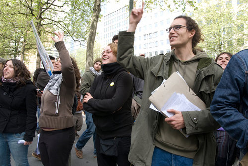 Studenten betogen voor een vermindering van de studiekosten en het respecteren van het VN-pact van New-York.