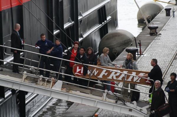 Passagiers Noorse cruiseschip 'Fram',leren hoe Antwerpse stadsambtenaars denken...:'L'heure c'est l'heure'...