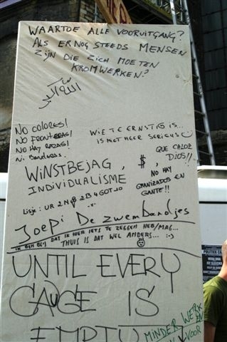Op 19,20,21 en 22 juli stonden de militanten van de Oost-Vlaamse afdeling van het Comité voor een Andere Politiek op de Gentse Feesten met een muurkrant. Opgesteld met in de bibliotheekstraat spraken we de feestgangers aan en boden hun een forum om hun mening te geven.