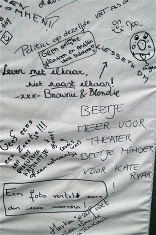 Leuke foto's, maar de nieuwsgierige lezer blijft wel op zijn honger zitten. Wie zijn jullie? Wat doen jullie? Plannen? Resultaten van de actie?