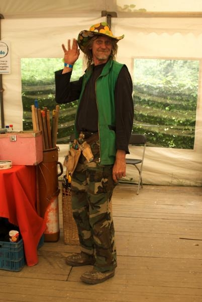 “Wij zijn een organisatie die zich bezighoud met spelontwikkeling en speldistributie. Niet zomaar spelen maar informatieve spelen waaruit men echt iets kan leren. We willen de jongeren op een speelse manier correct laten omgaan met afval. Op festivals heb je erg veel afval, dat is bijna onvermijdelijk daarom is ons thema van dit jaar recyclage. Vanuit dat oogpunt hebben we een stand opgebouwd rond het recycleren en het hergebruiken van afval. “