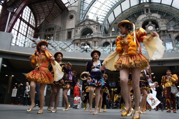 Antwerpen:Feestmarkt 'De Wereld om je hoek' in het Centraal Station.