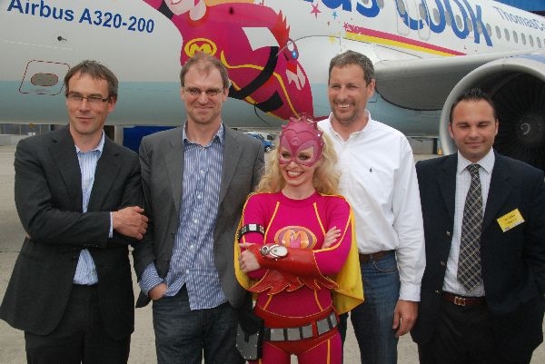 Gisteren werd op Brussels Airport het Thomas Cook Airlines Mega Mindy-vliegtuig gedoopt door de knalroze heldin van Studio 100.