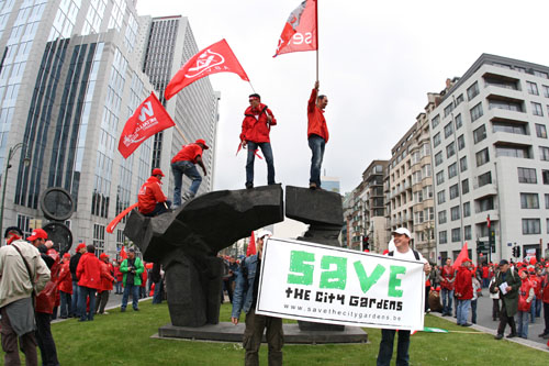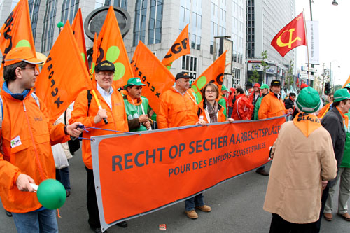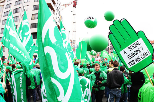 De Euromanifestatie lokte vandaag meer dan 50 000 betogers naar Brussel. Vakbondsafgevaardigden, arbeiders, bedienden en zelf sans-papiers, allemaal stapten ze vandaag mee, om een duidelijk signaal te geven aan de Europese commissie en aan de Europarlementariërs. “De crisis werd niet door ons veroorzaakt, dus wij betalen er ook niet voor. De toekomst van Europa moet en zal sociaal zijn.”