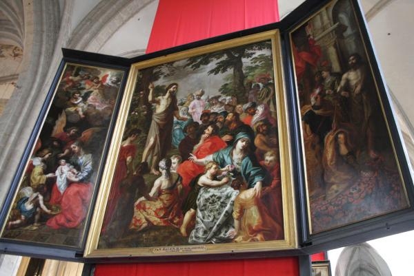 Tot 1798 bleven de schilderijen,geschilderd door de beste meesters zoals Metsijs en Rubens,op hun vertrouwde plek.Met de Franse overheersing werden vele naat Parijs gevoerd.Nadien keerde een aantal terug en kwam terecht in het Museum voor Schone Kunsten te Antwerpen.Uitzonderlijk verlaten de werken het museum en komen ze even terug naar de kathedraal,de plaats waarvoor ze geschilderd werden.