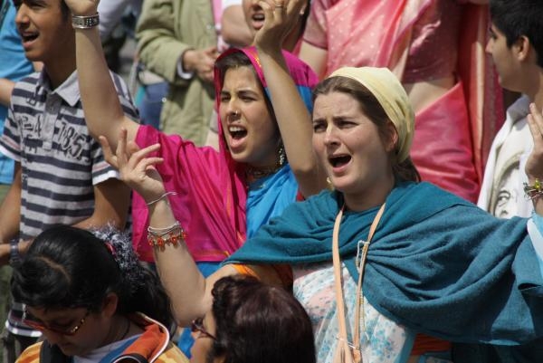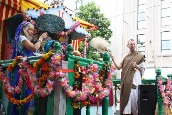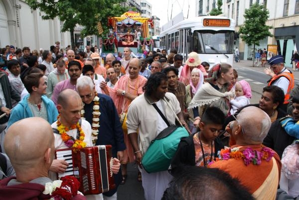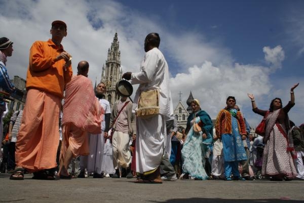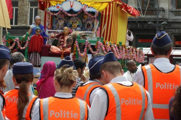 En naast een Indische Markt met gratis maaltijd ,een cultureel programma is er ook een vuurceremonie en vooral een Ratha-Yatra Parade door de Antwerpse straten.