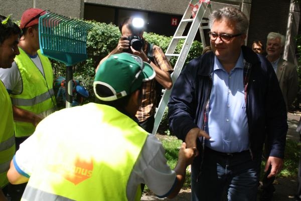 Maandag bracht Prins Laurent met zijn eigen motorfiets een bezoek aan een aantal werven van buurtbeheerbedrijf MANUS.