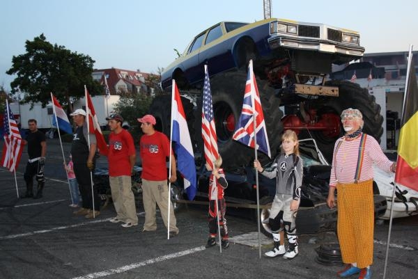 Artistiek zeer hoogstaand is het stuntwerk met de wagen en vrachtwagen op 2 wielen in alle mogelijke formaties en dames... jullie mogen mee op 2 wielen. Als slot van de show is er de allesvernietigende actie van de monstertrucks. Deze 5000 kg zware monsters, 600 pk laten geen spaander heel van de autowrakken.