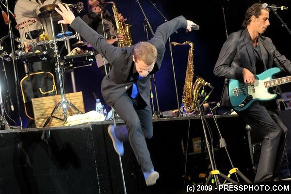 Haal Chanson & Rock door een blender en je krijgt Bénabar. Deze man sluit het hoofdpodium af. Ondanks de mindere weergoden blijft het plein goed gevuld & heeft het publiek er duidelijk zin in.
