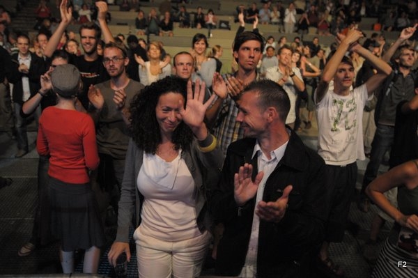 Het kostte hen dan ook niet veel tijd om het OLT aan het dansen te krijgen.In hun show gebruiken ze ook traditionele maskers dewelke in Ecuador gebruikt worden om de oogst riten te vieren dit geeft hun optreden een soms wat bizar tintje.