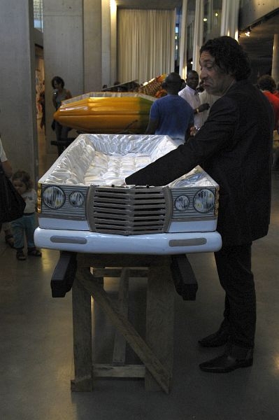 ANTWERPEN -- Op de openingsdag van dit kunstenforum ging de aandacht vooral naar de (doods)kisten van wijlen Kane Kwei. Deze Ghanese timmerman creëerde fantastische doodskisten die in relatie stonden met de overledene. Zo maakte hij bvb. voor de visvrouw van op de markt een kist in de vorm van een vis. Met de tentoonstelling "Magiciens de la Terre" in het Parijse Centre Pompidou in 1989 werd hij wereldberoemd. Sinds zijn dood in 1992 nam zijn zoon zijn atelier over.