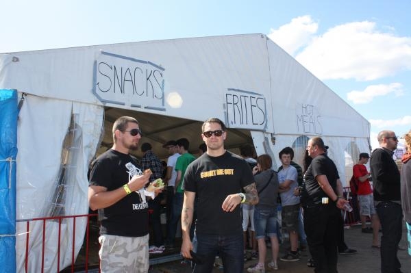 In die tijd, begin jaren negentig, was het een logische keuze om voor een volledig veganistisch aanbod te gaan. Omdat velen, zowel van de organisatoren als de festivalgangers straight edgers waren. Bovendien waren de meesten ook vegetariër en is de stap naar veganisme dan uiteraard niet zo groot meer. Elke dag is er keuze uit chili sin carne, verse frietjes en verscheidende turkse broden met paddestoelen, met seitan of gewoon met rauwkost. Allemaal best lekker die veganistische shit! Voor het eerst trouwens staat Theo, GSR-labelbaas en al jaren kok, in voor de organisatie van veganistische maaltijden.