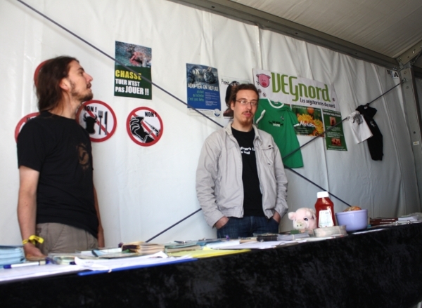 Naast het aanbod aan veganistische maaltijden bevinden er zich op het festivalterrein ook enkele standjes die over dierenrechten en vegetarisme/veganisme handelen. Hieronder worden ze kort even voorgesteld.