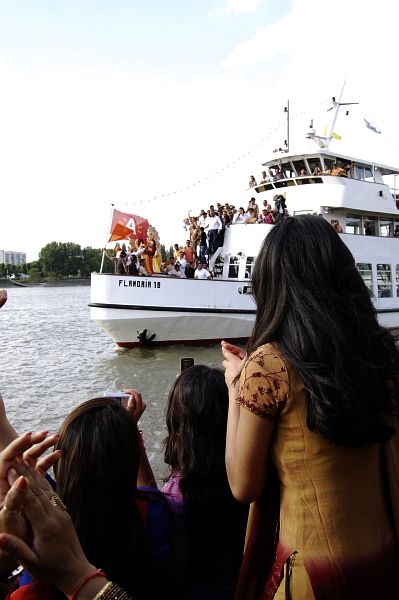 [Antwerpen] Op de laatste dag van het Ganesh-festival (Ganesh Chaturthi) wordt een beeltenis van de Hindoestaanse God Ganesh - beter bekend als de god met de olifantenkop - toevertrouwd aan de zee of een rivier. Hij neemt alle ongemakken van zijn aanhangers met zich mee, zodat ze ervan bevrijd zijn.