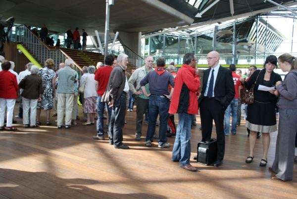 Zo'n veertigtal werknemers van Petroplus hebben deze dinsdagmorgen actie gevoerd aan het 'nieuw' Antwerpse Justitiepaleis.
