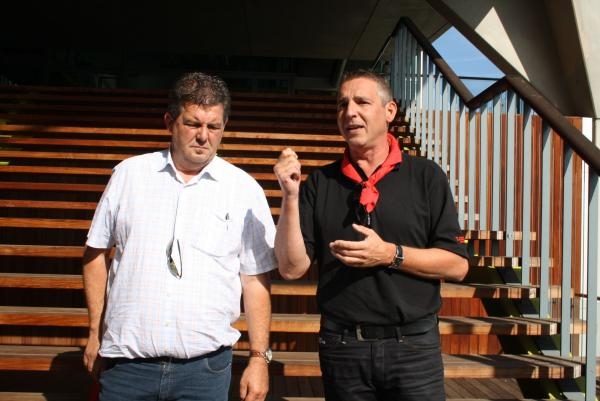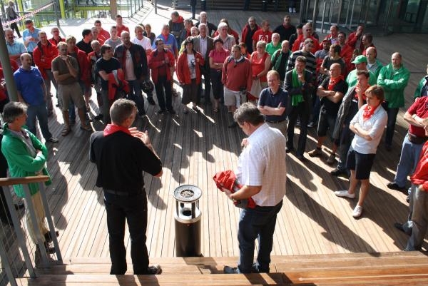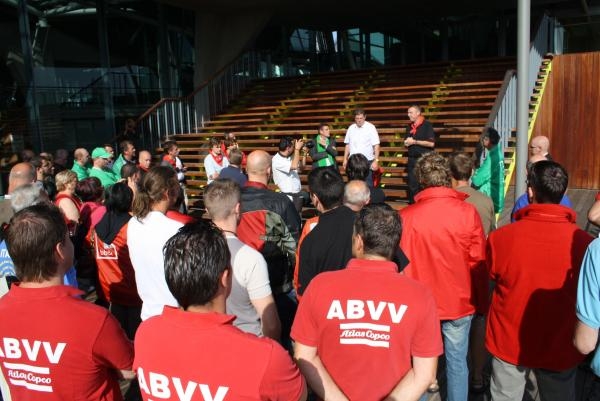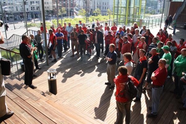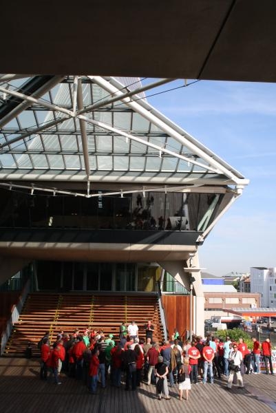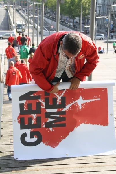 Petroplus-Petroluem Antwerpen-, voert actie aan het Vlinderpaleis in Antwerpen.