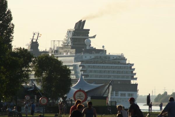 Het is de langste cruise-248 meter- die in Antwerpen tot nu toe aanmeerde.