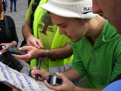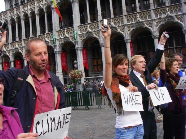Ik sta op de grote markt van Brussel, het is 12:18u stipt, en overal rondom me hoor ik alarmen afgaan. Op meer dan 20 plaatsen in Brussel, meer dan 2300 plekken in de wereld en uit nog veel meer mobieltjes weerklonk vanmiddag het Climate Wake Up Alarm. Eenmaal iedereen wakker geschud, werd er naar de overheid gebeld met de vraag in Kopenhagen een ambitieus klimaatplan na te streven. Organisatoren van deze Climate Wake Up Call zijn Tck Tck Tck, Avaaz en vele vrijwilligers.