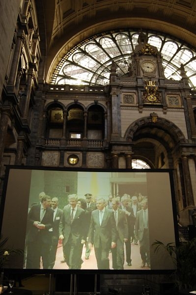 Bij aankomst in de stationshal volgden toespraken van ondermeer burgemeester Janssens en bestuurders van de NMBS-holding en Eurostation.