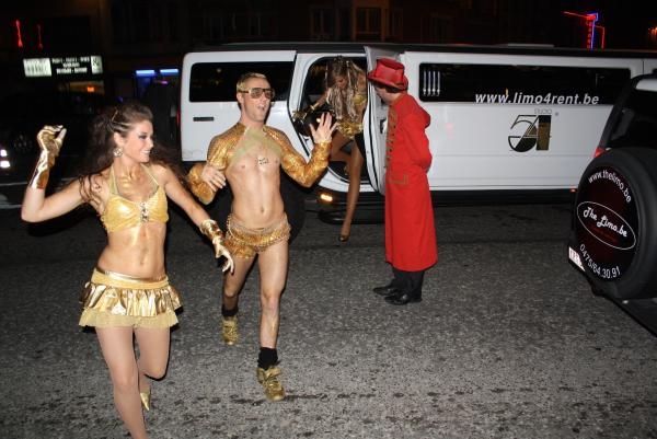 ...Waaronder een legertje BV's aangevoerd per stretchlimousine.